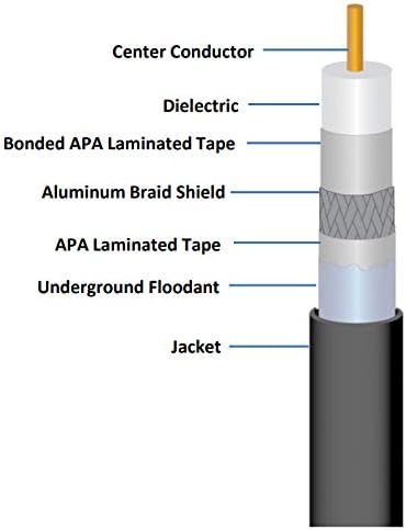 1000ft BLACK MADE IN USA RG-11 F1177TSEF DIRECT BURIAL 3X SHIELDS COAXIAL DROP CABLE 14AWG GEL COATED BRAIDS PE JACKET BURIED FLOODED UNDERGROUND COAX CABLE REEL (LOWER SIGNAL LOSS OVER RG6)