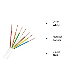 PHAT SATELLITE INTL feet White Thermostat Wire 18/7 Solid Copper 18AWG 7-Conductor Power Limited Circuit Wire Flame Retardant PVC, UL Listed CL2, Low Voltage Cable (feet, White)