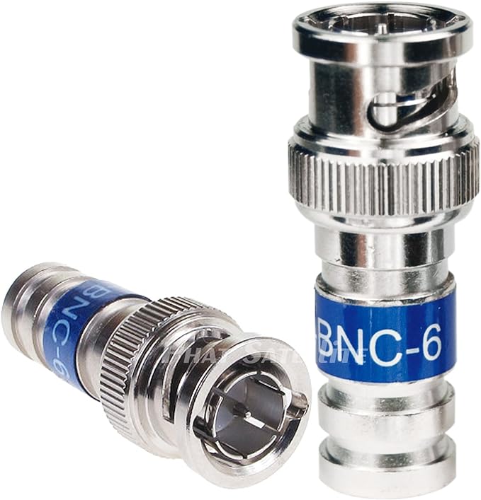 BNC 6 BI Thru Quad Shield RG6 COAXIAL Cable Compression Connector Blue Standard Commercial Grade Nickel Plated All Brass Non Corrosive for Audio Video CCTV Security Camera Applications