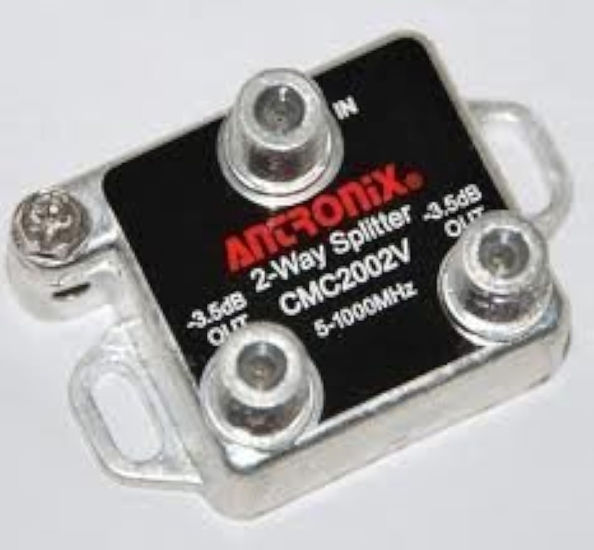 - 2-Way Split: Divides a single coaxial cable input into two equal outputs.