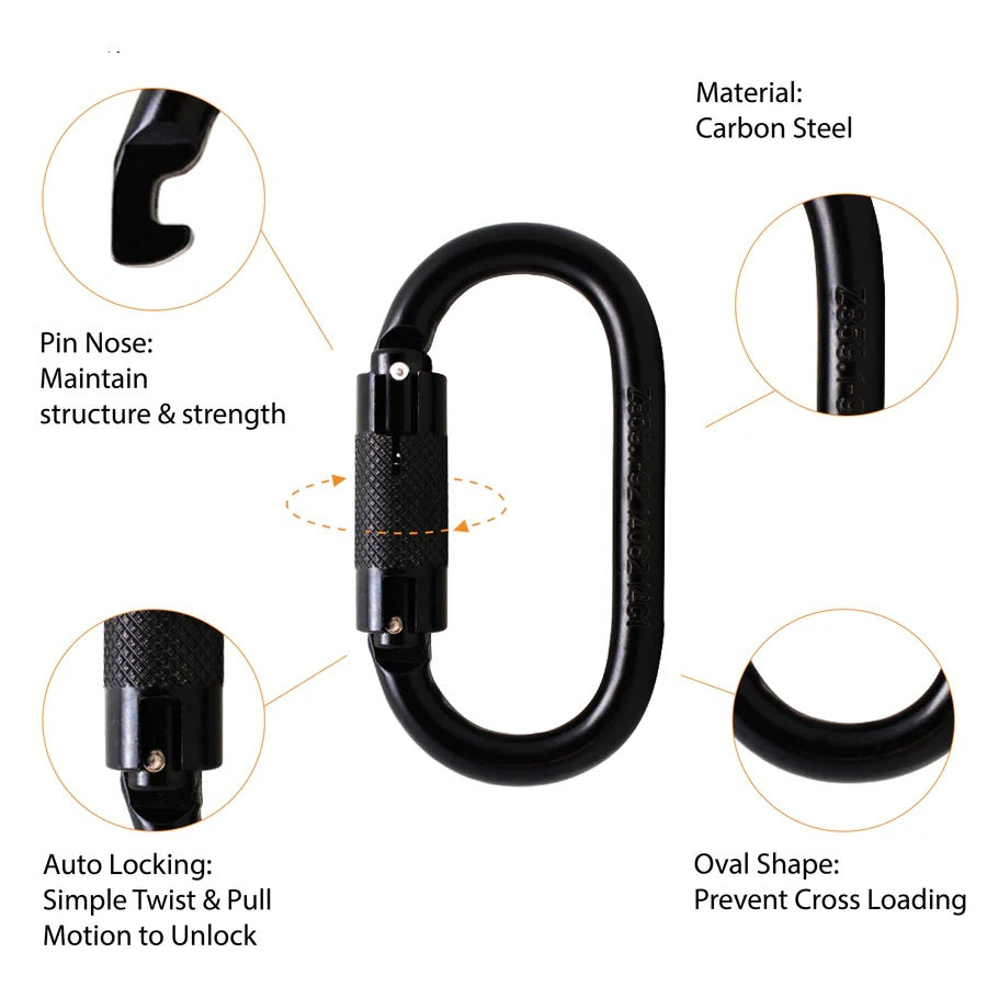 FUS Ovatti Steel - Auto Lock Carabiner - Black FP-9108-BLK