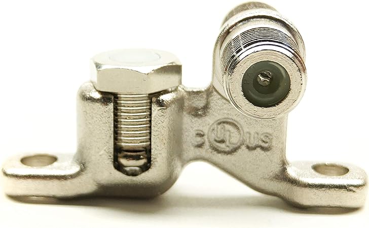 Single Port F-Pin Coax Grounding Block, Weather Resistant Nickel Plated Brass Construction, CATV HDTV Antenna Satellite Dish Ground, UL Listed SCTE